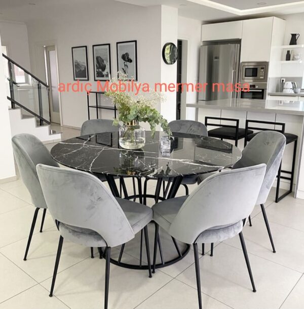 Siyah Mermer Desenli Yemek Masası