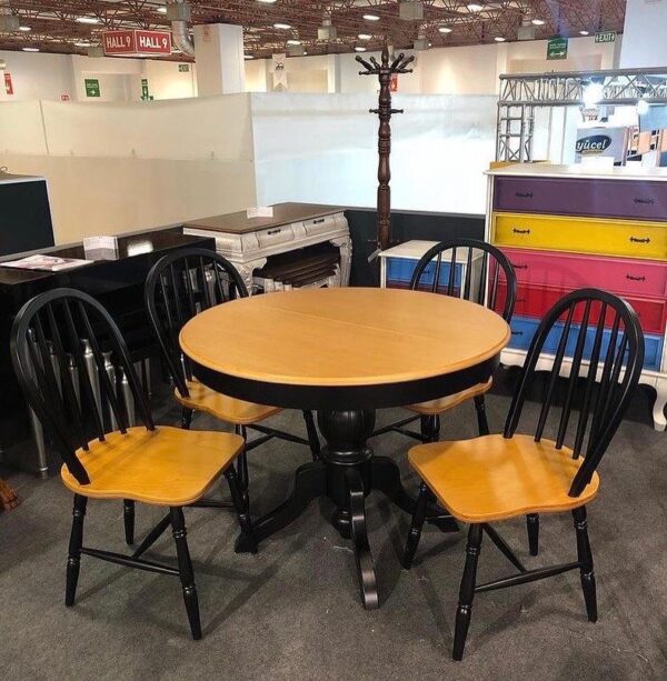 Yuvarlak Ahşap Baba Ayak Açılabilir Masa – Amerikan Sandalye Takımı