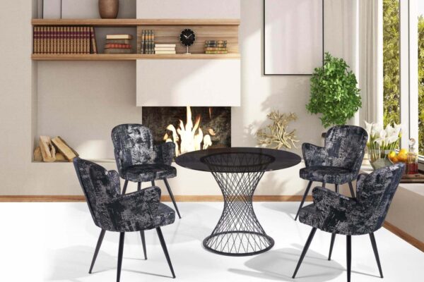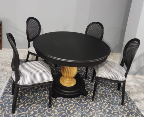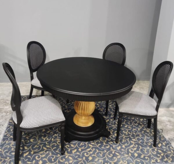 Baba Ayak Yuvarlak Yemek Masası Takımı – Siyah