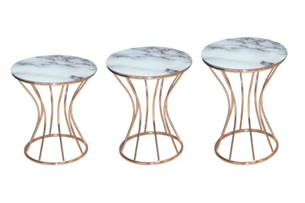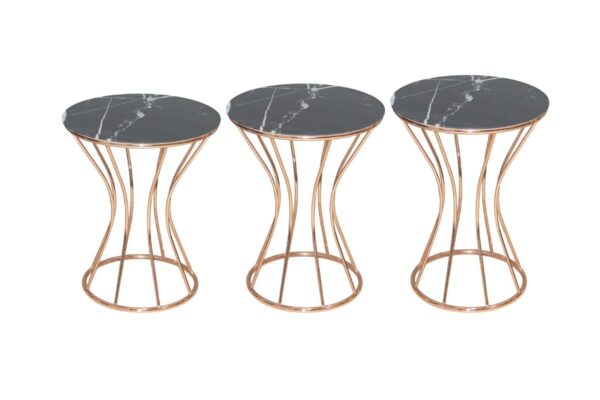 Metal Ayaklı Mermer Desenli Üçlü Zigon Sehpa