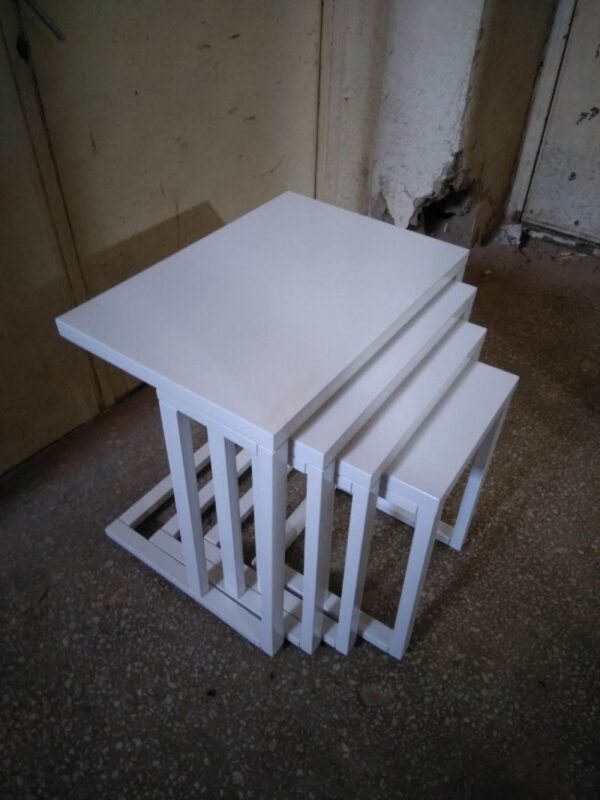 Ahşap 4lü Zigon Sehpa Beyaz (21036)
