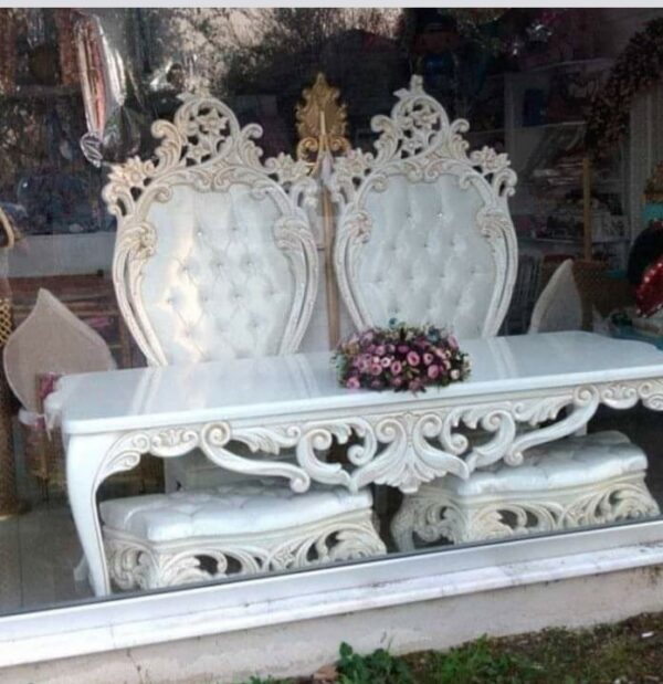 Gelin damat masa sandalye takımlarımız, evliliğe ilk adımlarını hafızalardan silinmeyecek nikah masalarında atmak isteyen çiftler için özel olarak tasarlanmıştır. Oyma nikah masası modelleri, genellikle farklı işleme ve tasarıma sahip özel sipariş üzerine yapılan nikah masalarıdır. Diğer gelin damat masalarına göre fiyat yönüyle de farklıdır.