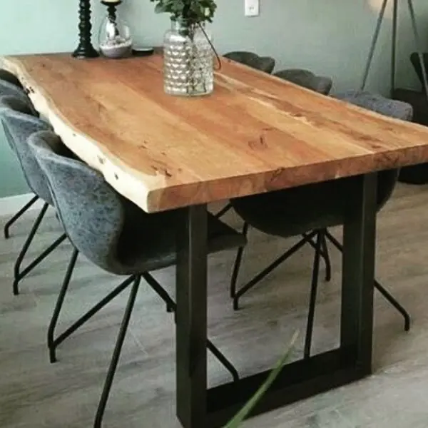 Doğal ahşap kütük tabla ve sağlam metal ayakların birleşimiyle tasarlanan bu yemek masası, modern ve endüstriyel stilin şık bir örneğidir. Dayanıklı yapısı sayesinde uzun ömürlü kullanım sunarken, doğal dokusuyla yaşam alanlarınıza sıcaklık katar. 6 kişilik kullanım için idealdir.