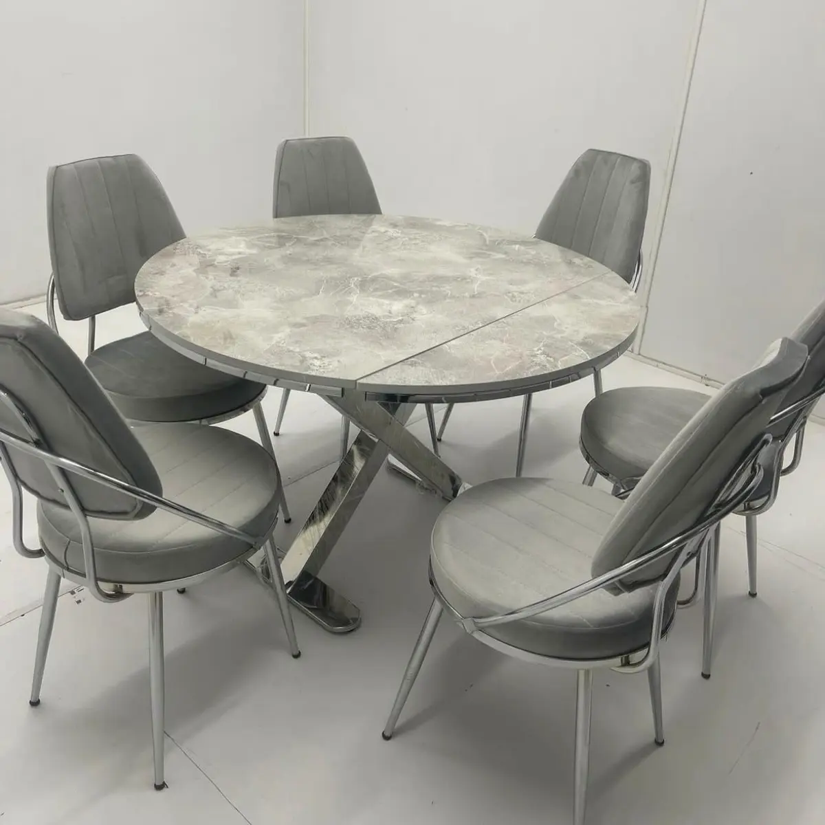 X Ayaklı Yuvarlak Açılır Masa Takımı